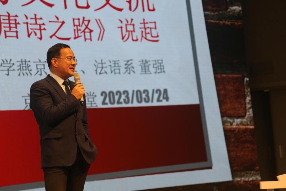 3月24日下午,北京大学港澳台办公室以线上线下相结合的形式举办京港大学联盟框架下—“京港大学堂”讲座,邀请到了燕京学堂院长董强教授带来《世界如何深化中西方跨文化交流?—从《唐诗之路》说起》主题演讲,北京师范大学、北京航空航天大学、北京外国语大学、北京工业大学、北京理工大学、中国科学院大学、首都医科大学、首都经济贸易大学及北大师生近200人线下参与,香港联盟高校师生线上齐聚。