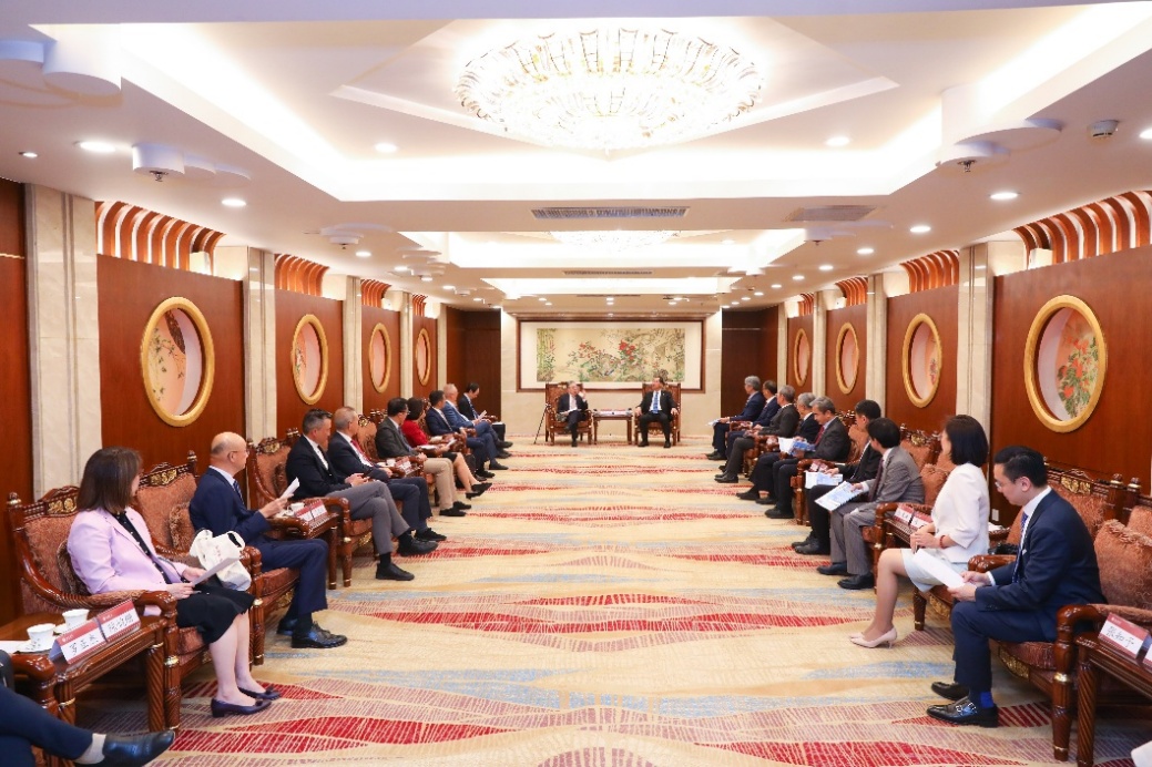 2025年5月28日下午,香港明天更好基金代表团团长陈启宗一行访问北京大学。北京大学校长龚旗煌在英杰交流中心会见代表团,副校长、教务长王博,党委副书记、统战部部长姜国华陪同会见。