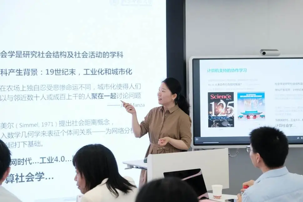 北师大教育学部王辞晓副教授作《基于关键角色互动特征的学习分析技术及智能预警研究》专题报告。随后,三校6名研究生围绕人工智能教育、数字素养培育、课堂管理等议题汇报研究成果,为教育领域提供新颖思考与洞见。