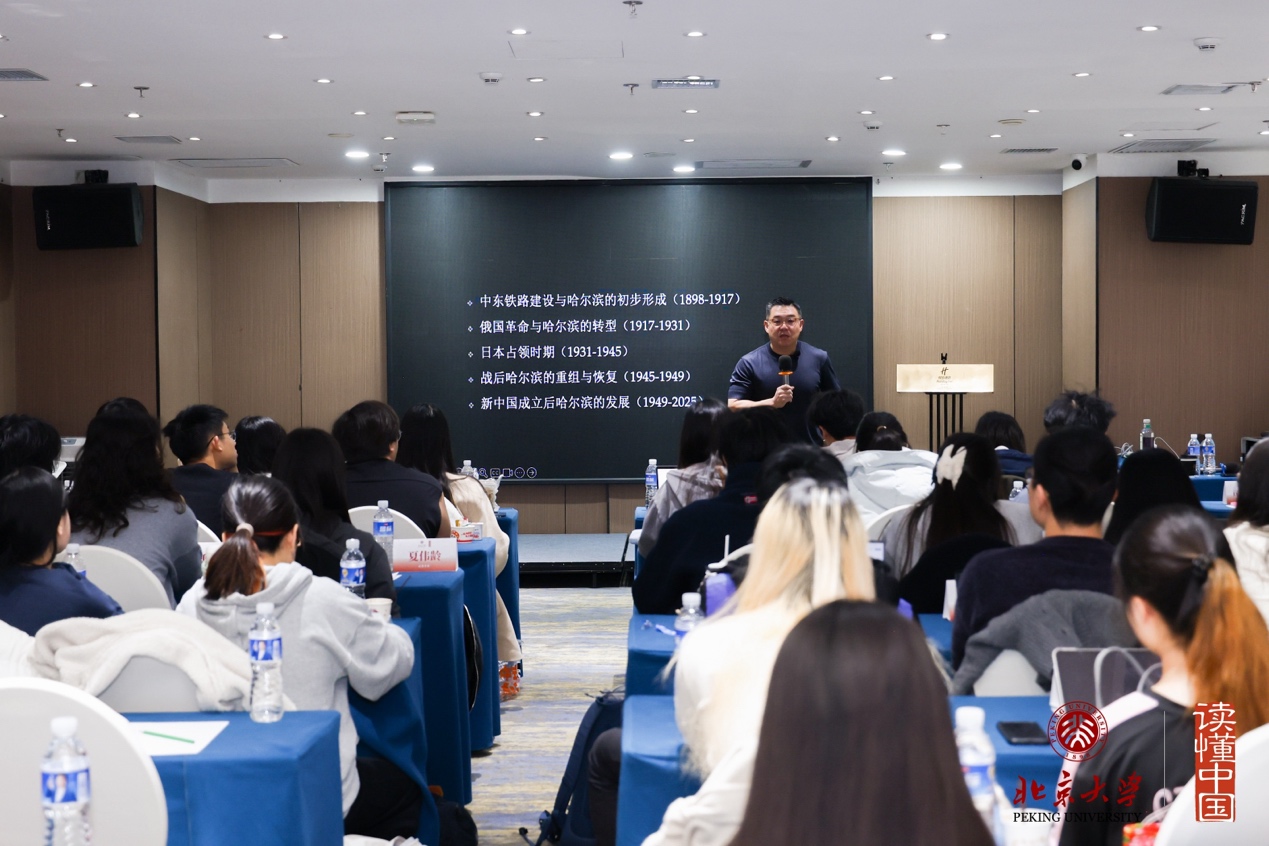赵龙凯以“人、城市与时间”开题,从哈尔滨的城市变迁谈到现代人的命运与选择,内容横跨历史、经济与哲学思考,既贴近生活又发人深省。以“从个体到时代”为引言,赵龙凯指出,研究社会最难之处在于如何从个人的微观体验,看到时代的宏观变化。他以家族故事说明人口迁移与命运流转,分析人口结构变化对金融与社会的影响,带领同学们思考老龄化、资本市场与世代分工的连动关系。赵龙凯带领大家回到哲学层面的反思——自由、时间与人的意义,以东极日出、年轮与农业节奏作比喻,邀请同学一起思考“如何感受时间”。这堂课是一场跨越历史、经济与人文的对话,让同学们在哈尔滨这座城市里,重新理解“人”的价值与时代的流动。